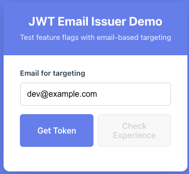 Progressive delivery without a full identity provider. Use a tiny JWT issuer and OpenFeature with DevCycle to gate experiences by email